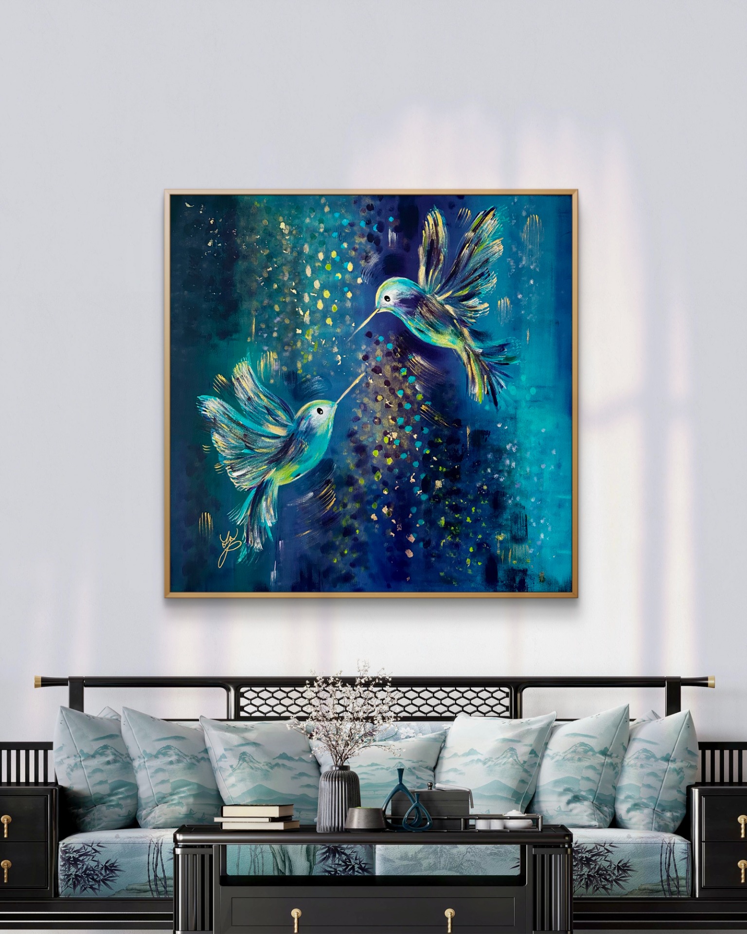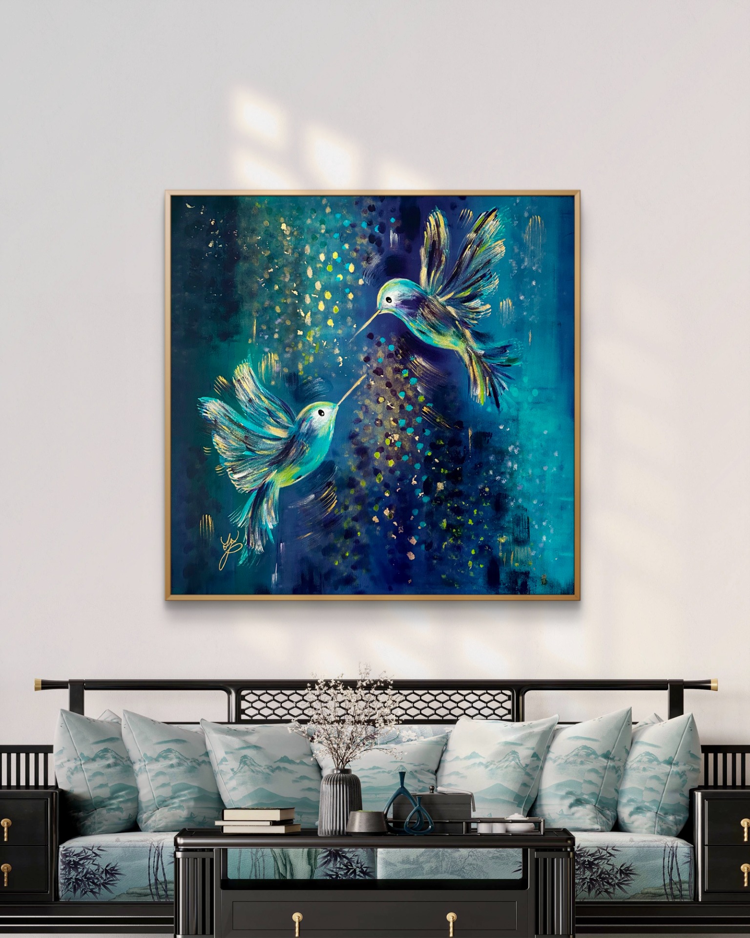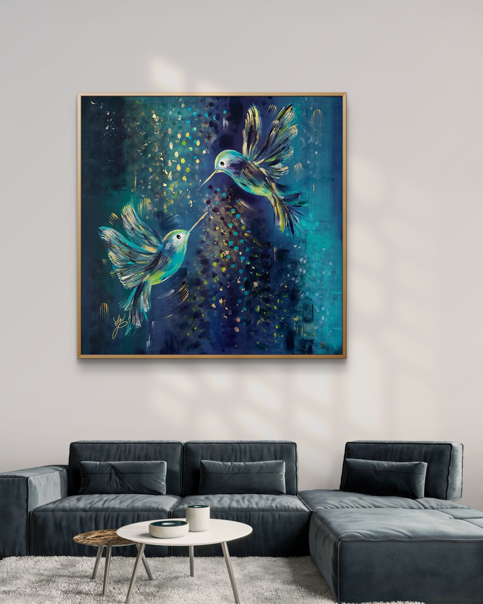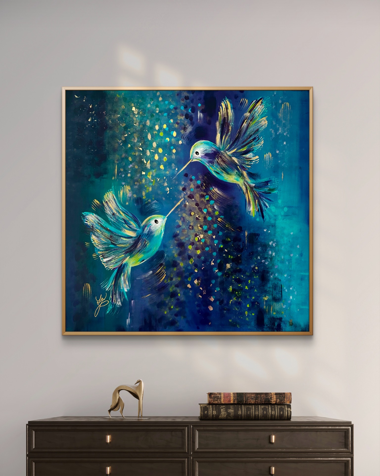 Z těchto kolibříků jsem doslova nadšená. Tvořili se s takovou lehkostí. A jak září. Miluji, jak se obraz mění pod dopadajícími paprsky světla.