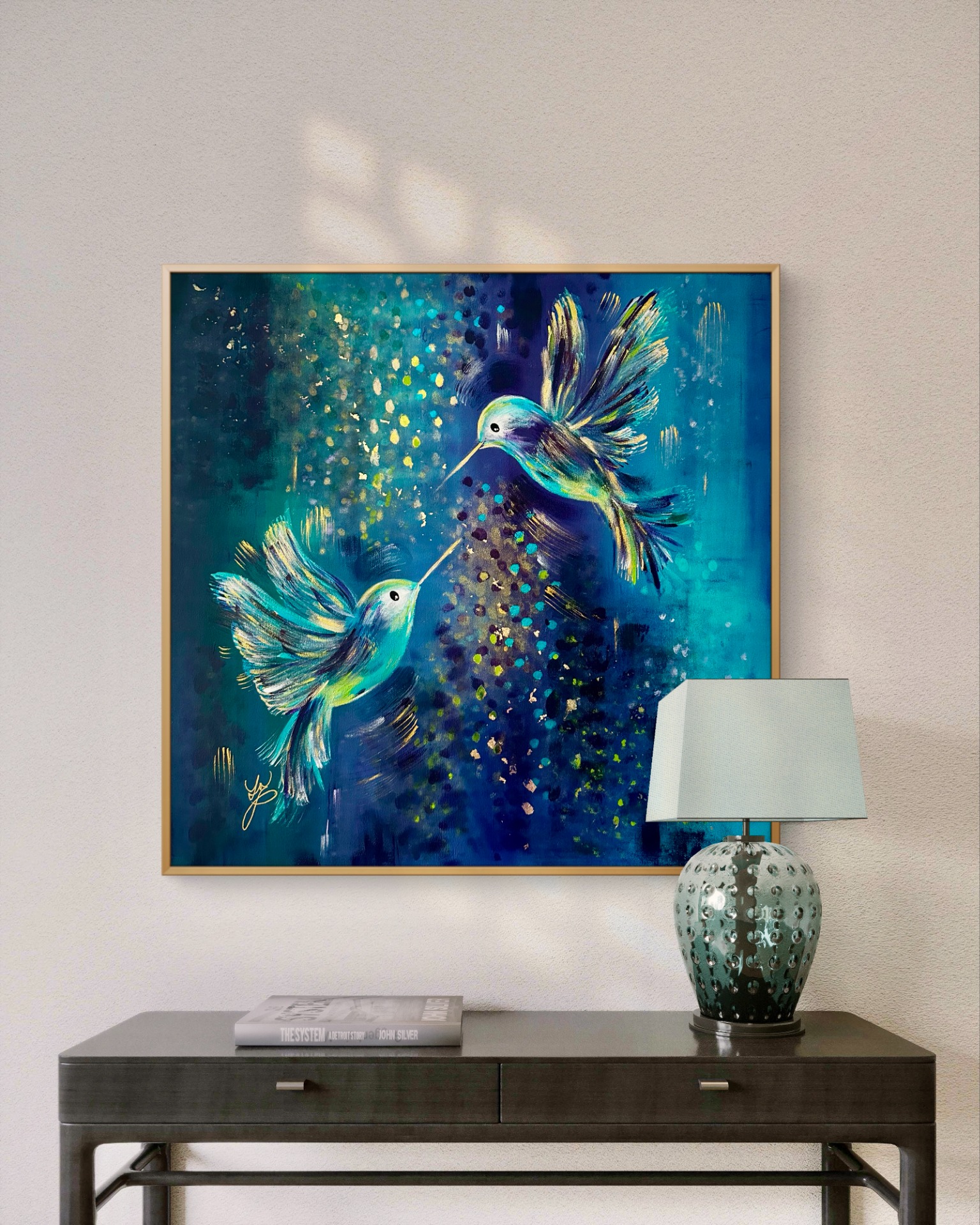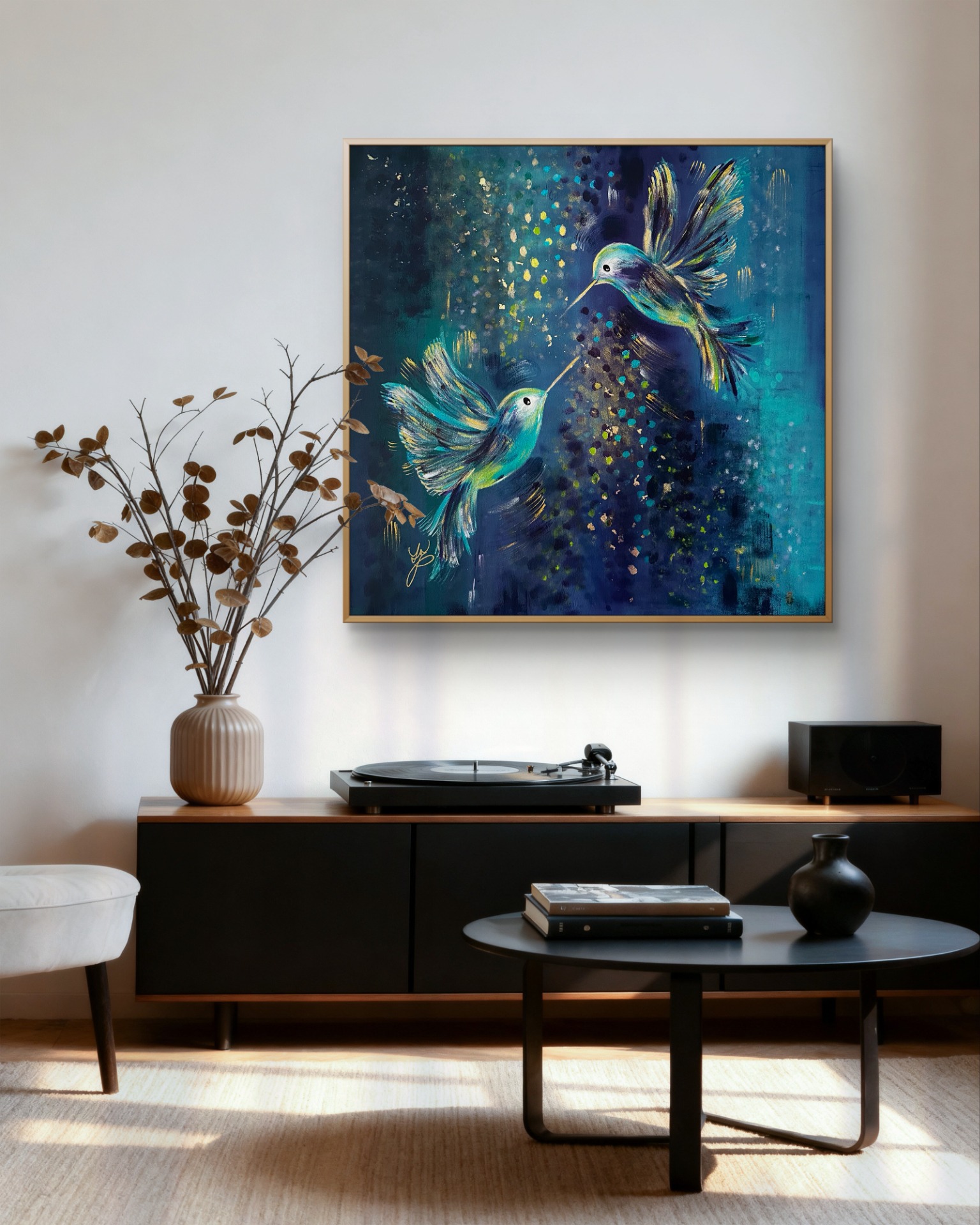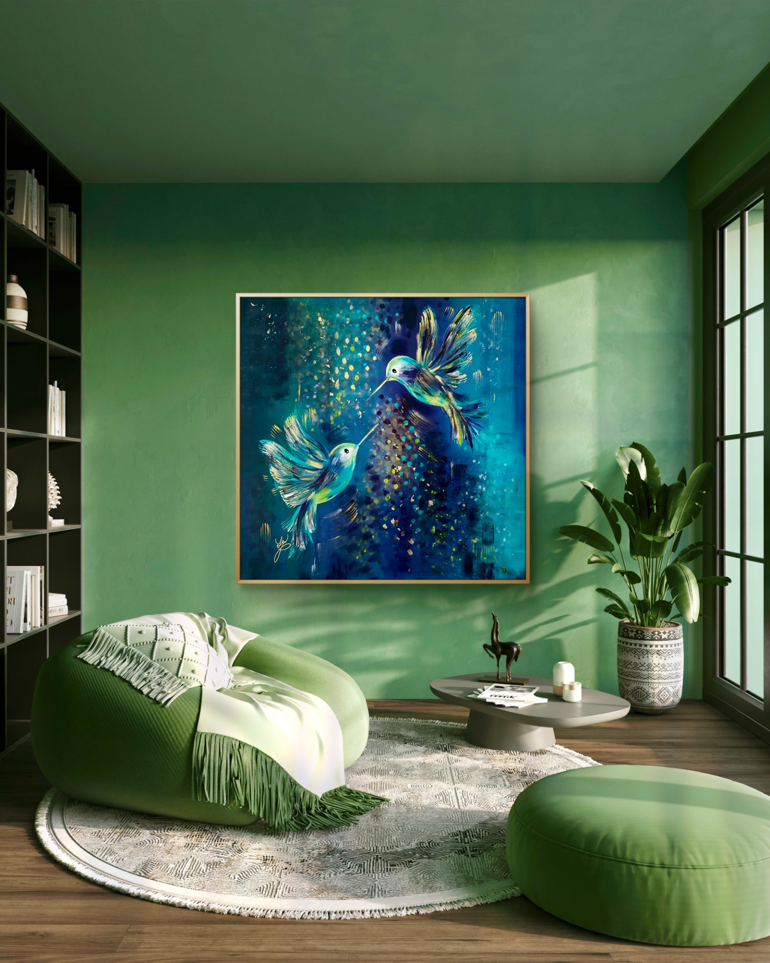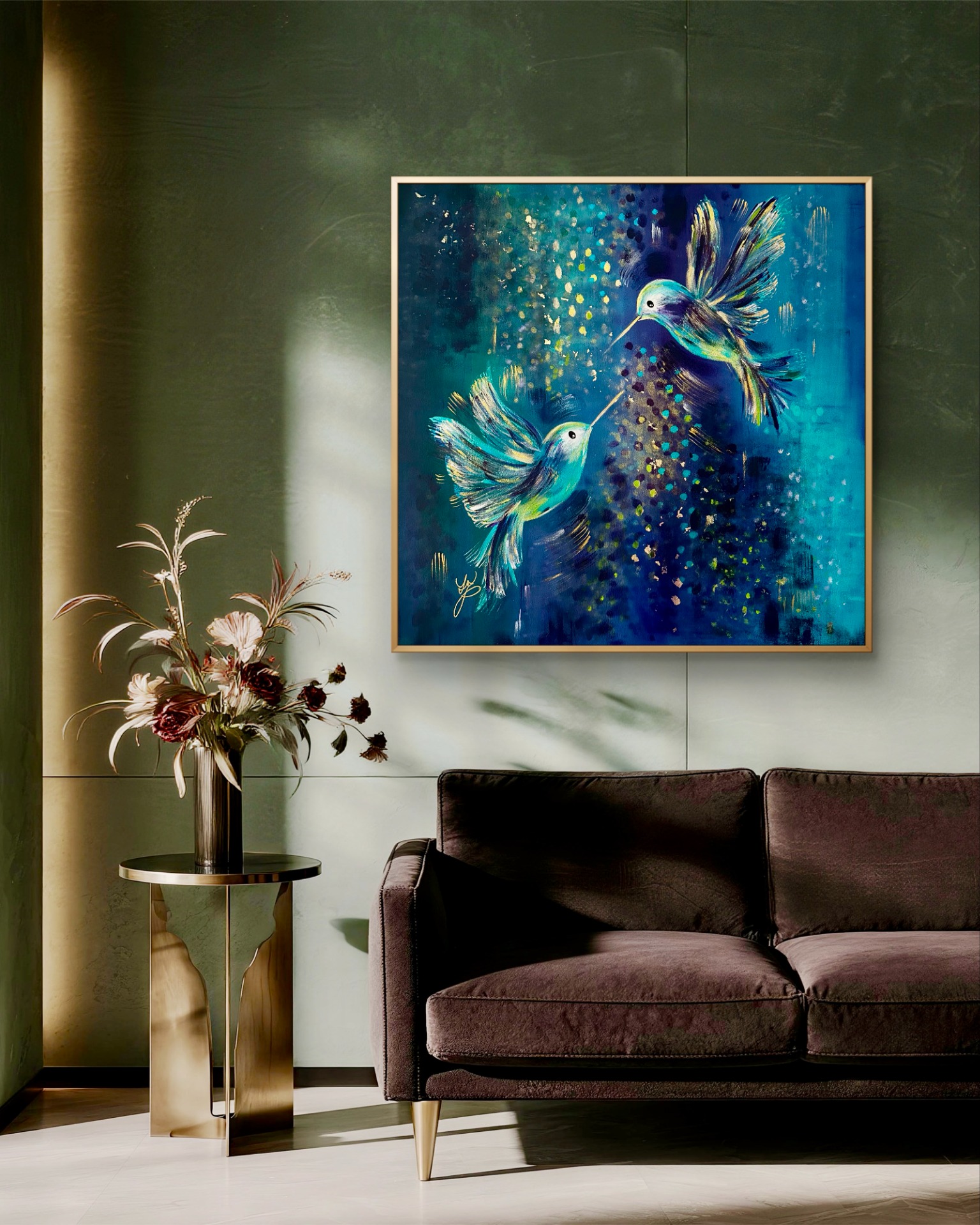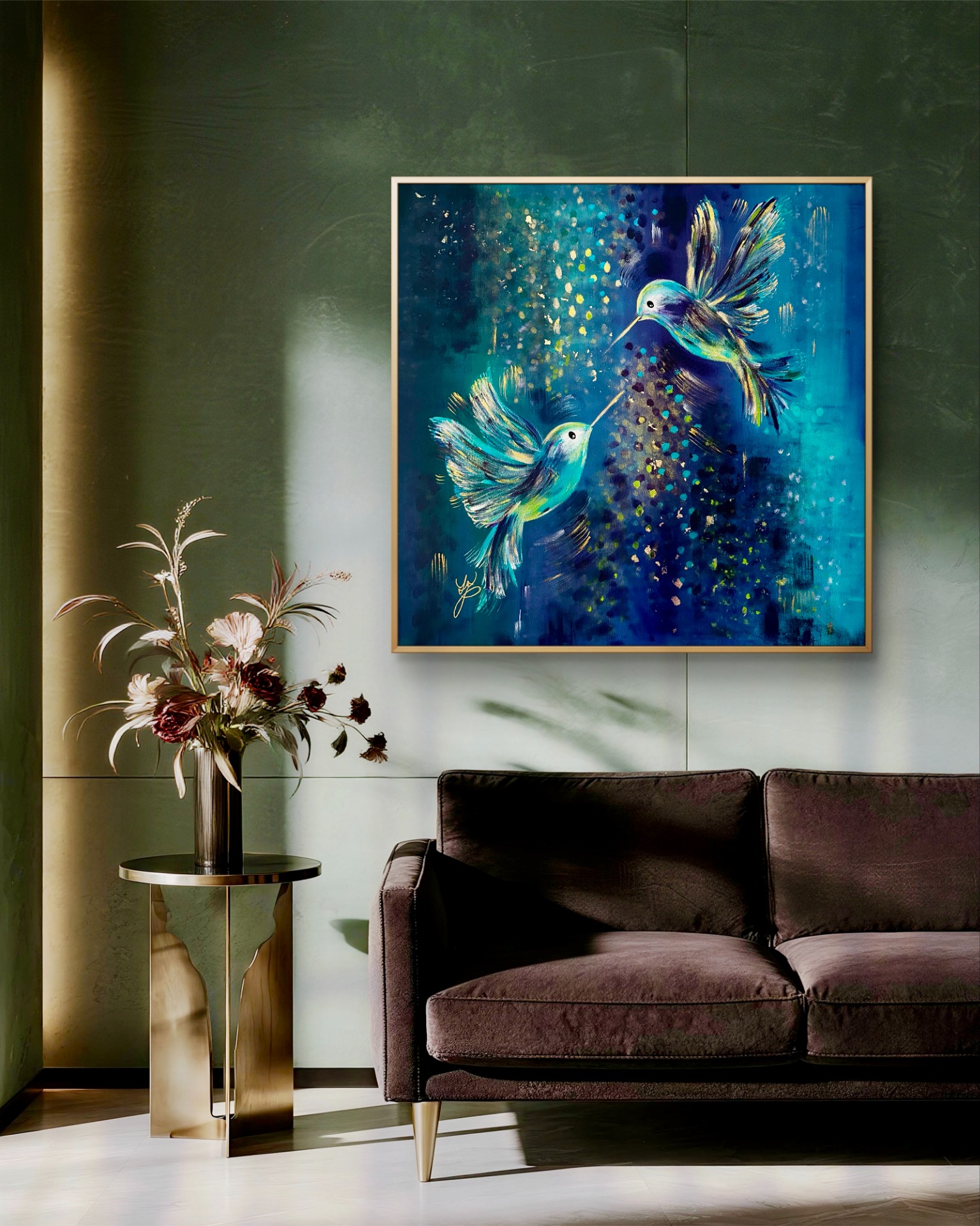 Z těchto kolibříků jsem doslova nadšená. Tvořili se s takovou lehkostí. A jak září. Miluji, jak se obraz mění pod dopadajícími paprsky světla.