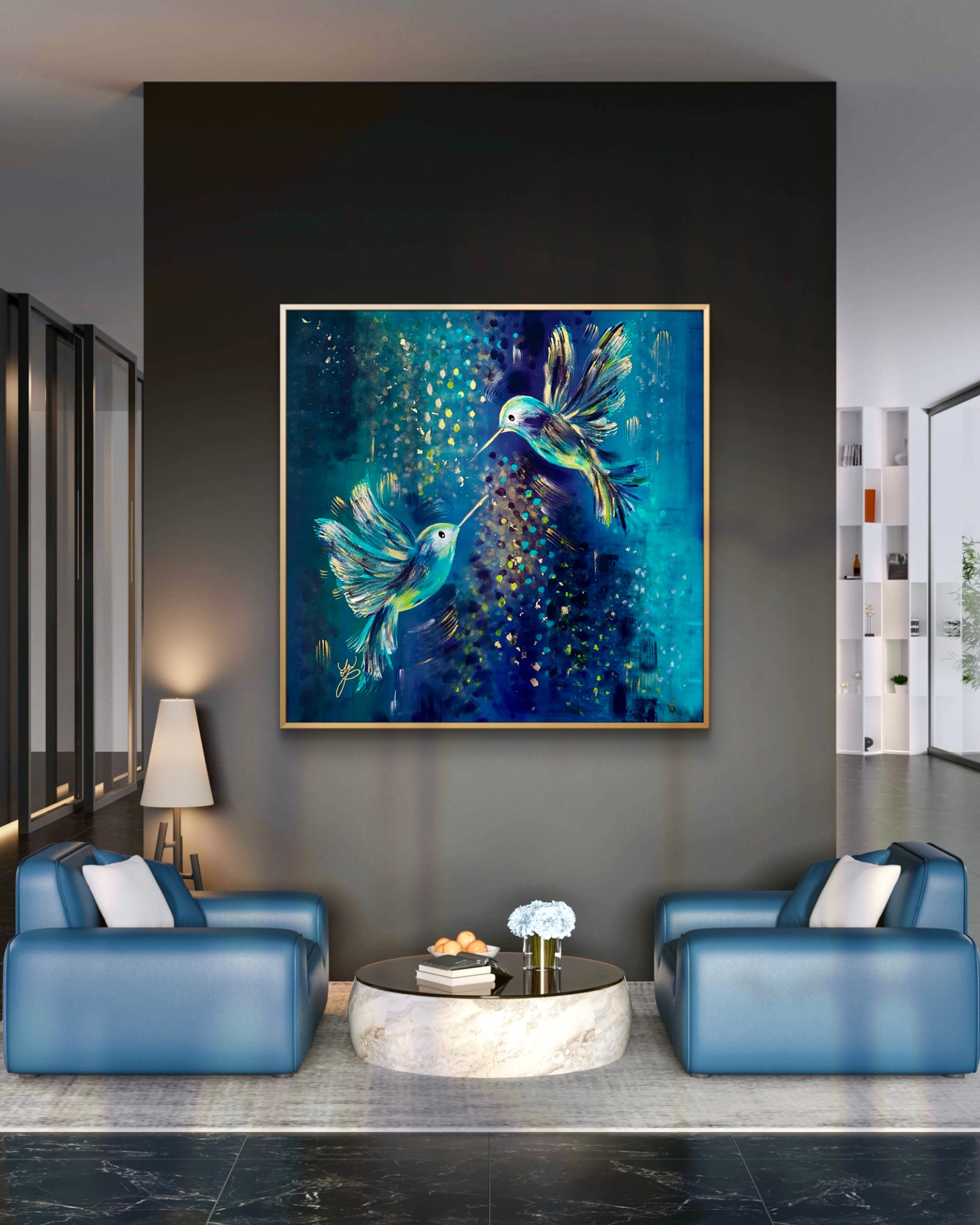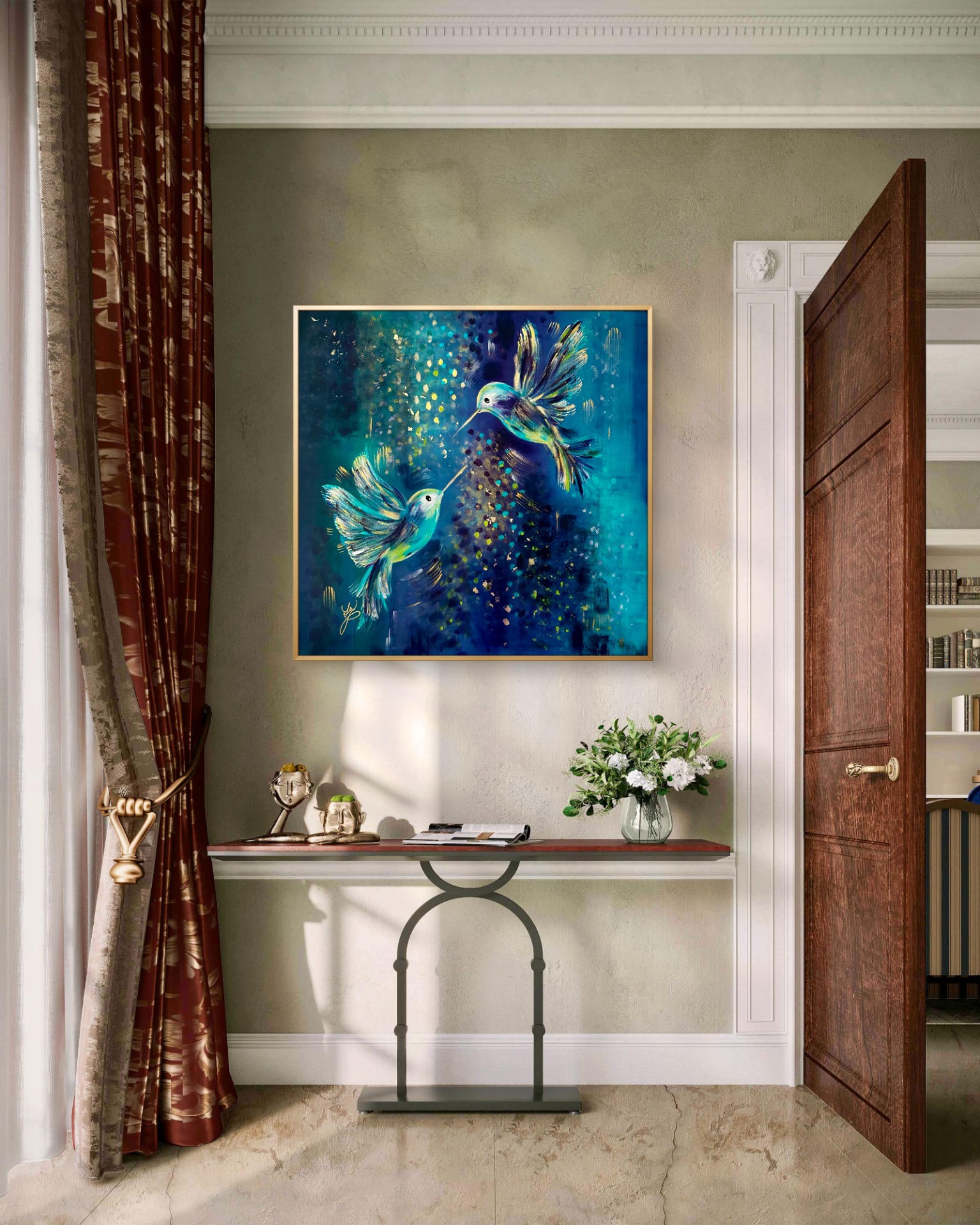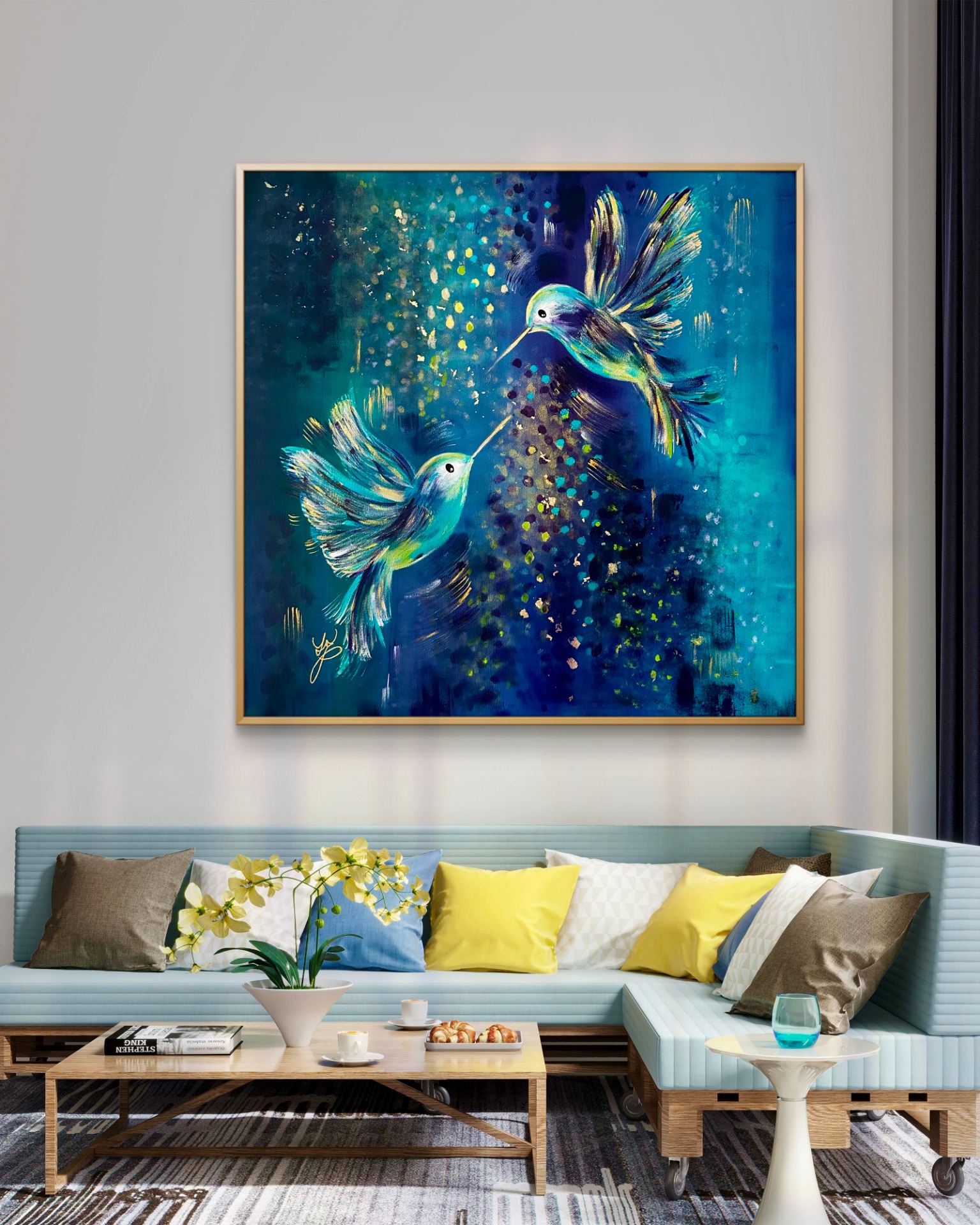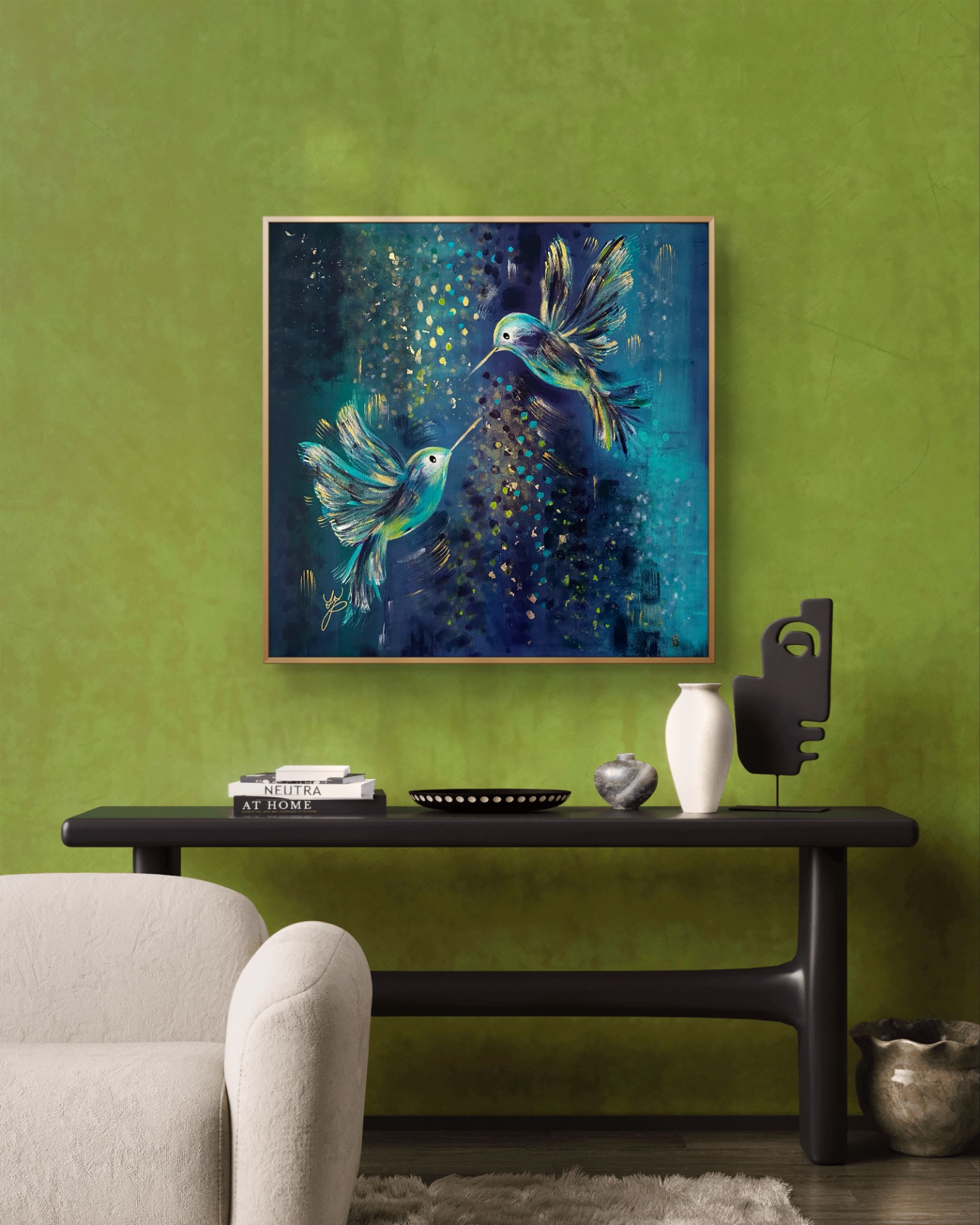 Z těchto kolibříků jsem doslova nadšená. Tvořili se s takovou lehkostí. A jak září. Miluji, jak se obraz mění pod dopadajícími paprsky světla.