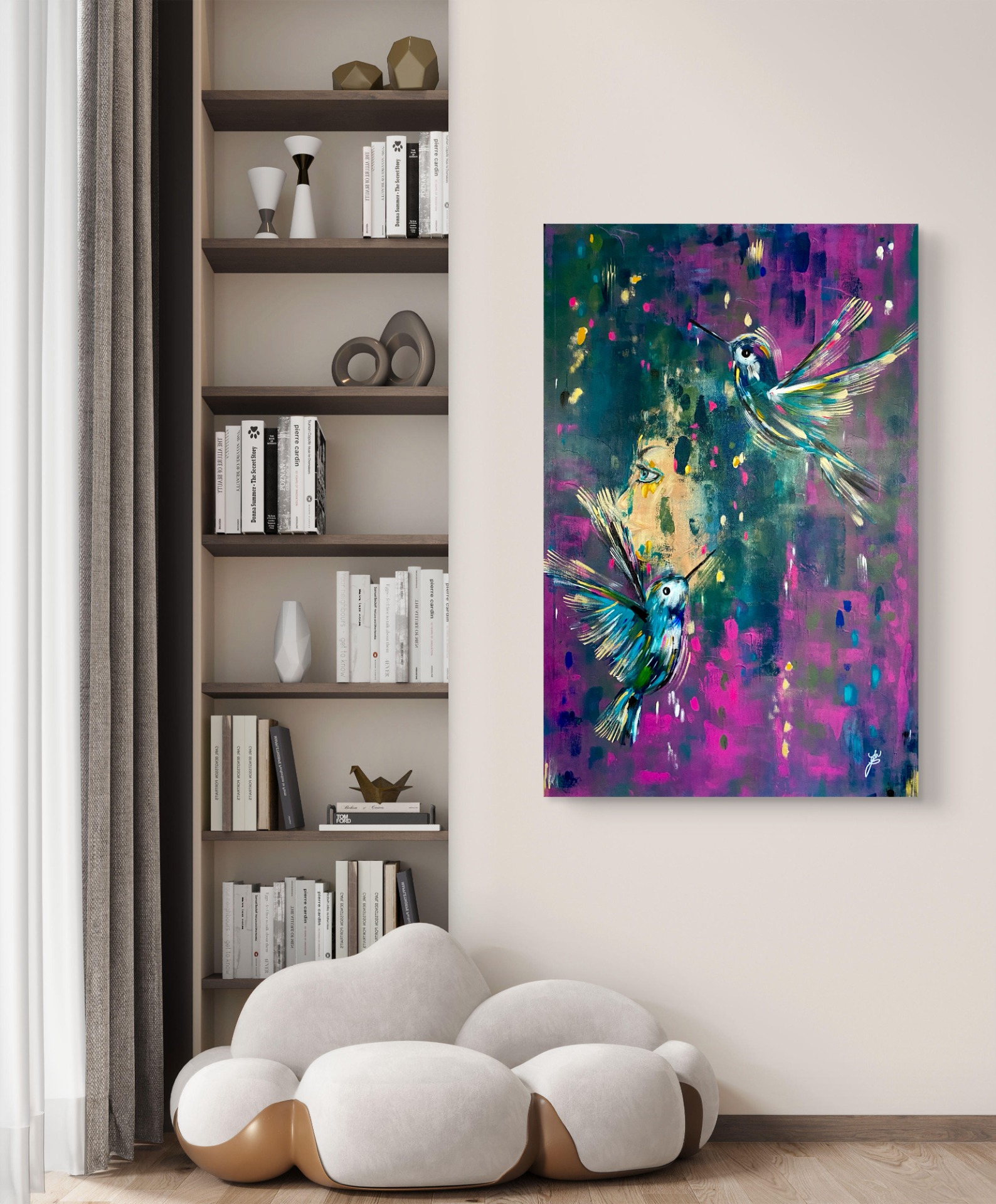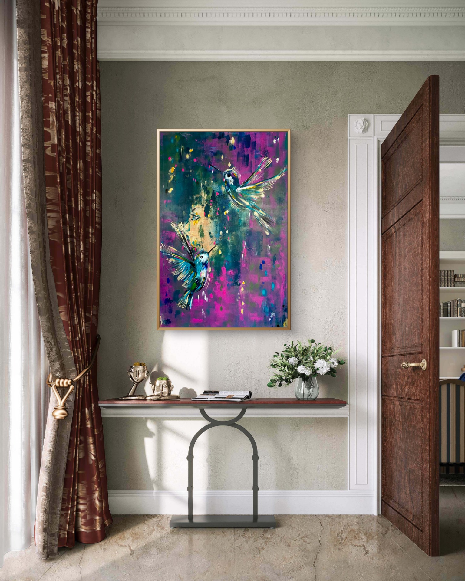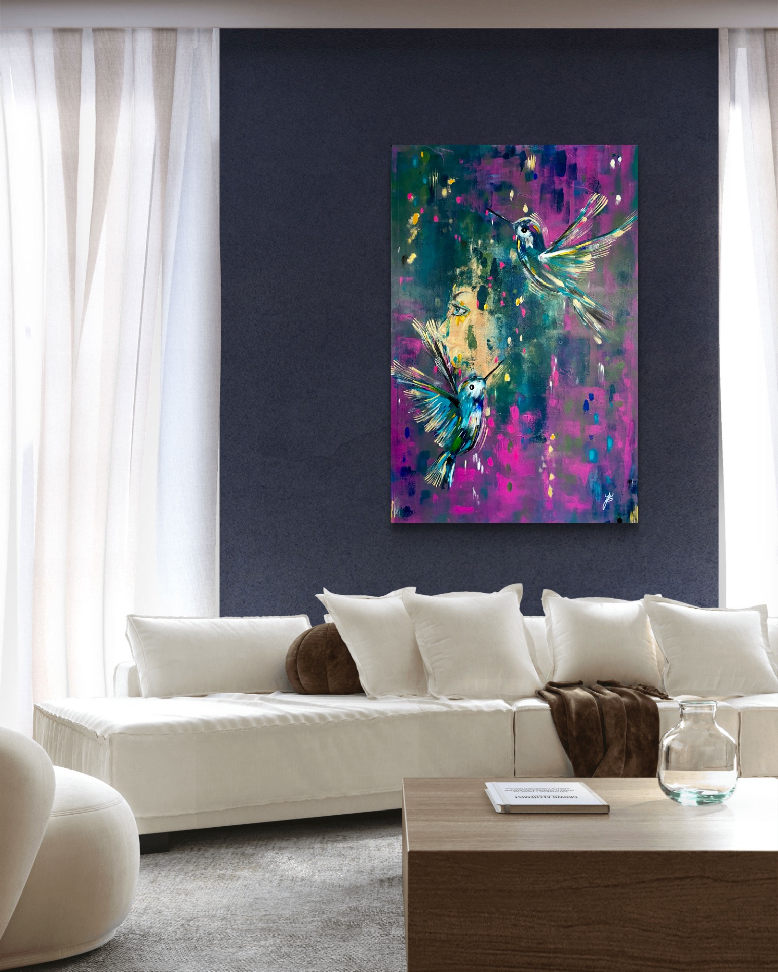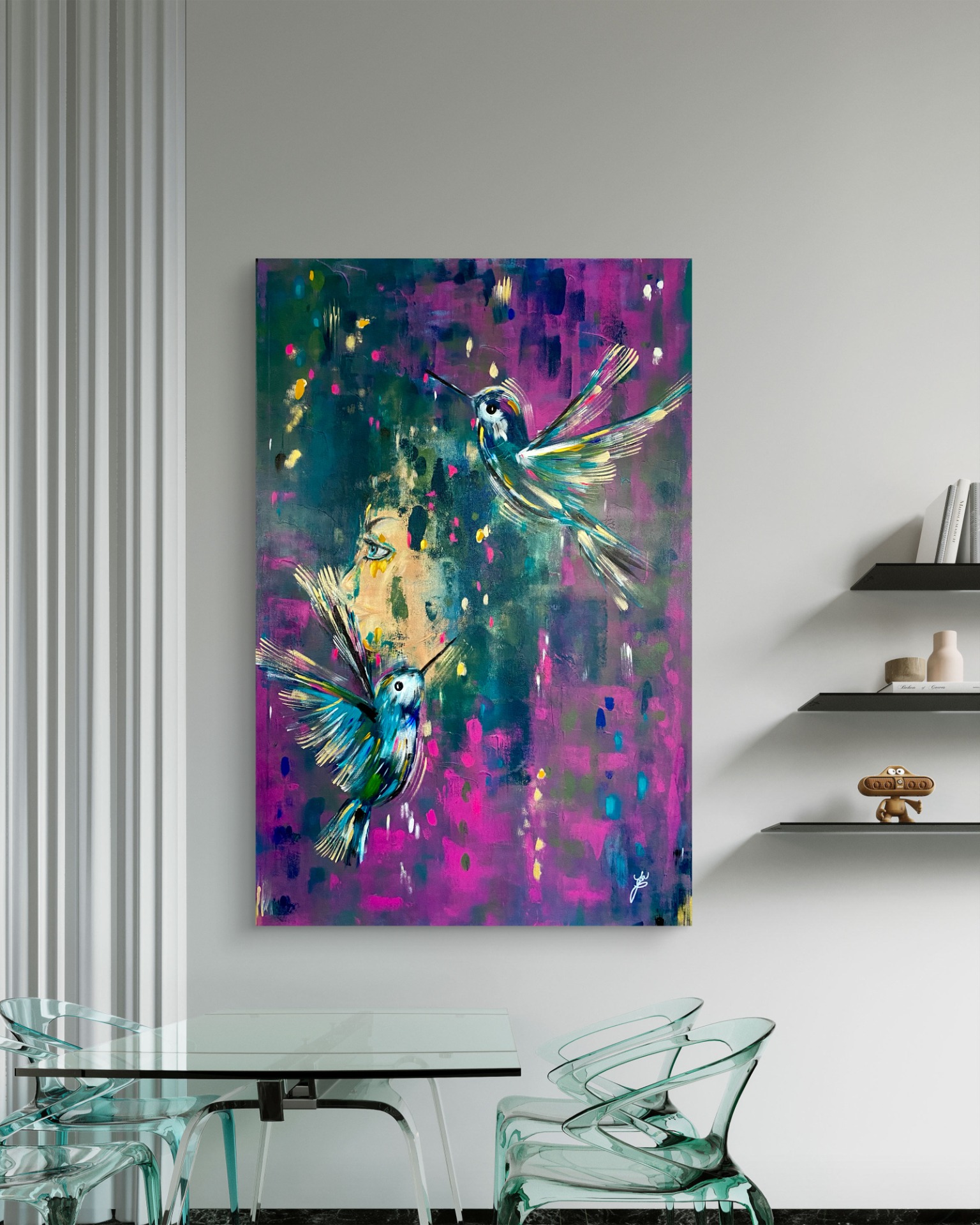 Ukrývá v sobě symboliku transformace, přeměny, chcete-li na té nejhlubší úrovni. Přeskupení buněk. V první fázi v něm byli motýli, to, že je přemaluji a že na konci na něm budou kolibříci, jsem opravdu netušila.